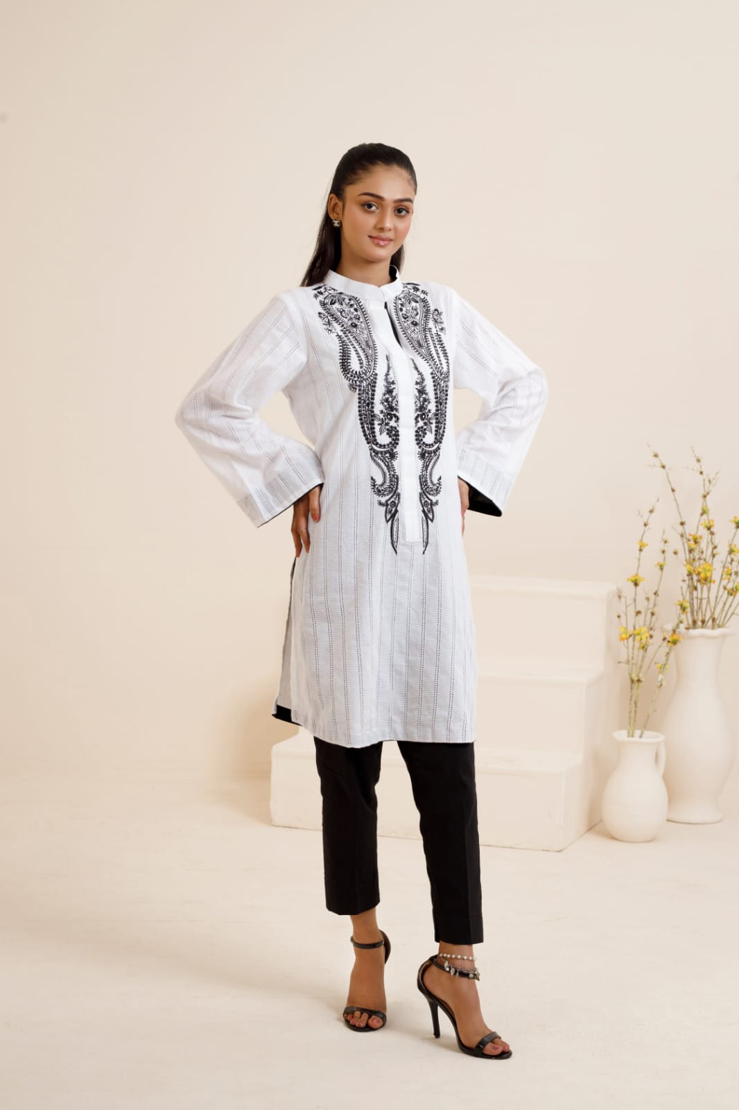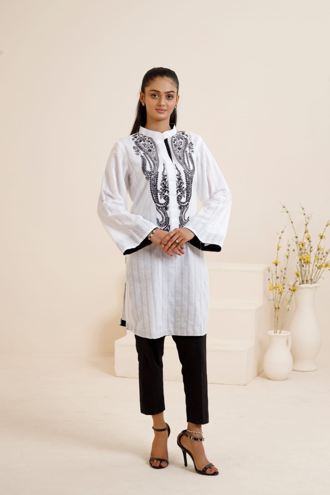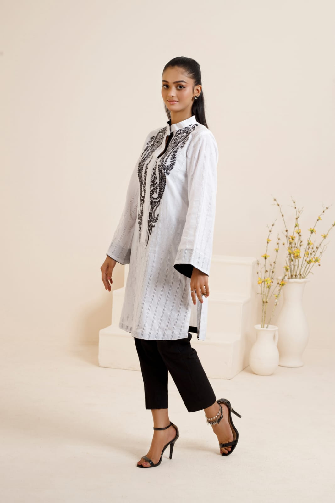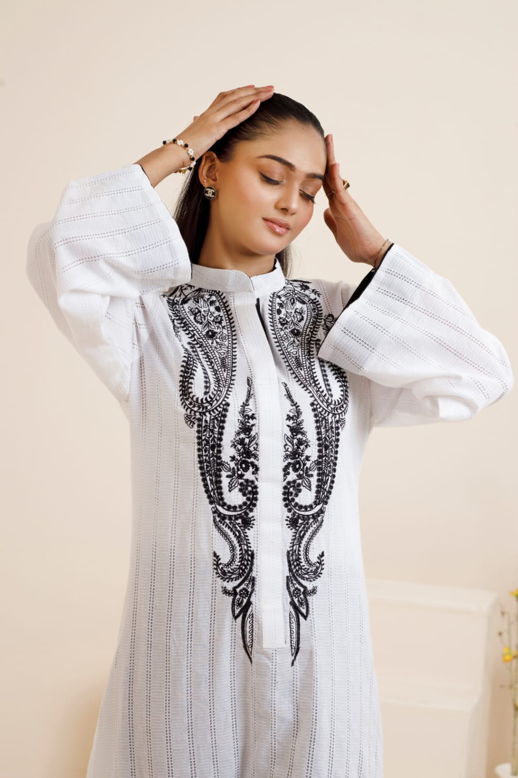 • Crafted from premium self lawn fabric for a lightweight and breathable feel.