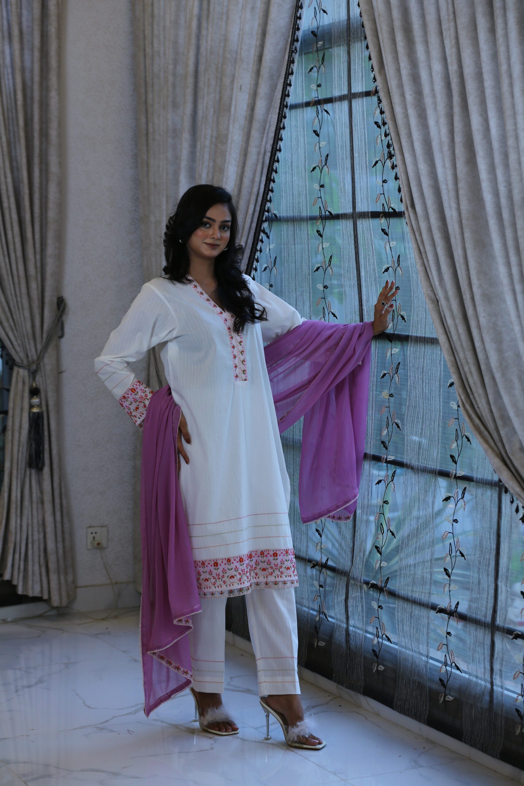 A vision in white and whispers of blush — Blush White is made for the woman who finds strength in softness and beauty in detail.