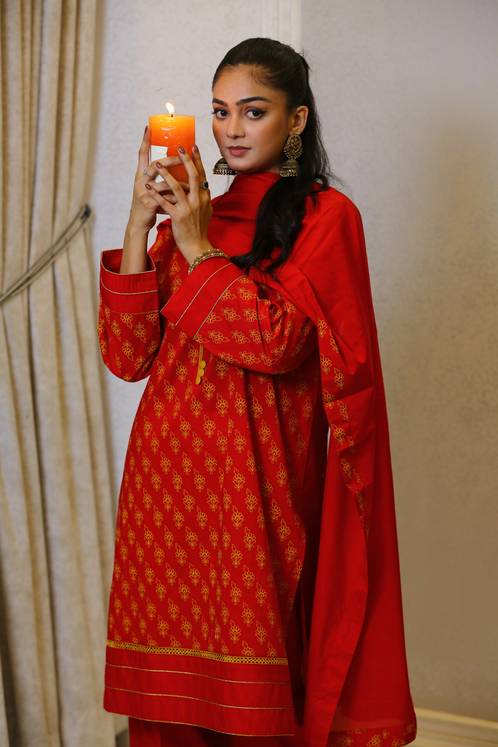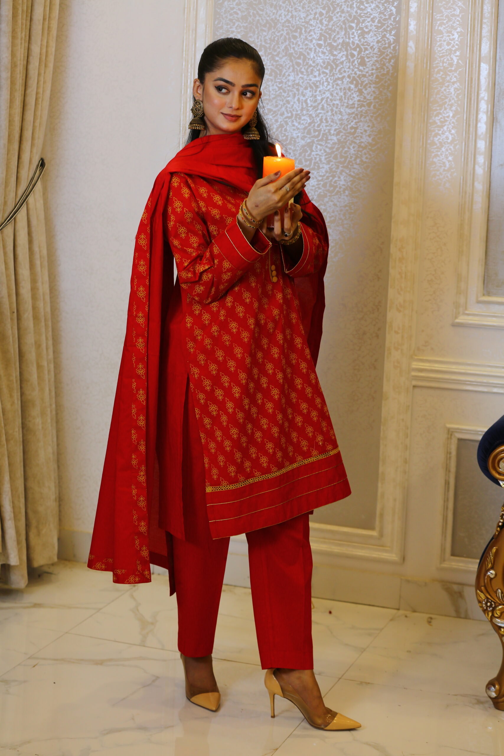 Vivid, timeless, and full of festive charm — Festive Red captures the essence of celebration in every thread.