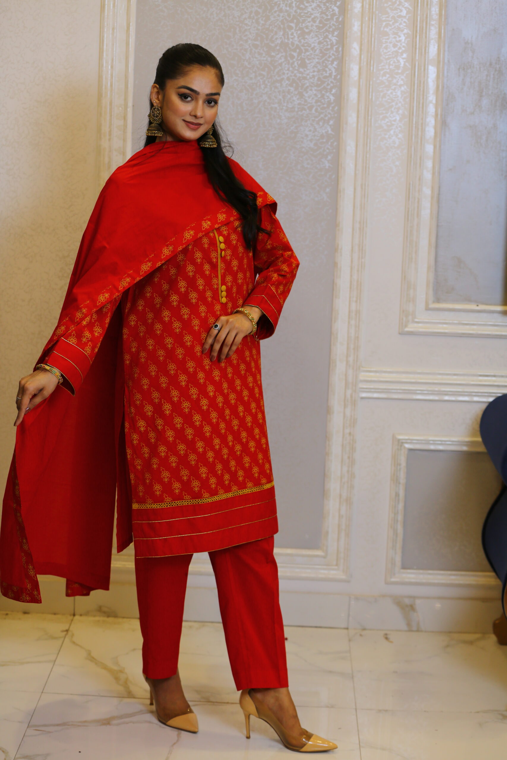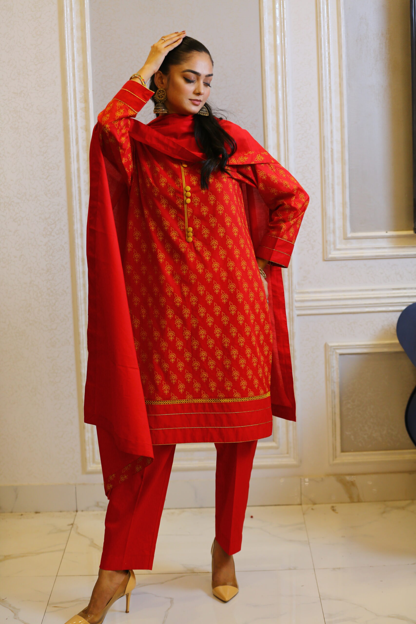 - Lawn dupatta adorned with a block-printed border, completing the look with subtle sophistication.