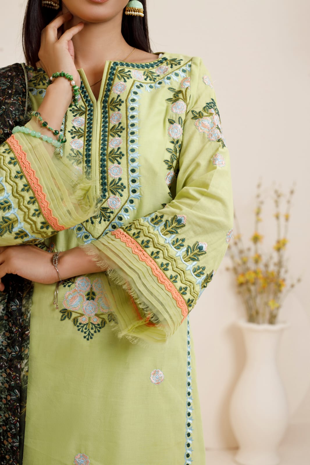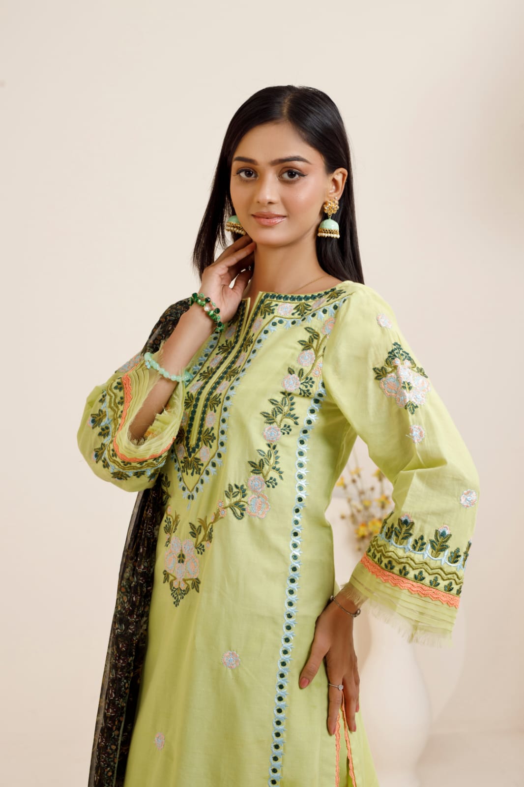 A serene blend of mint hues and intricate detailing — Mint & Moss is made for those who carry elegance in every season.