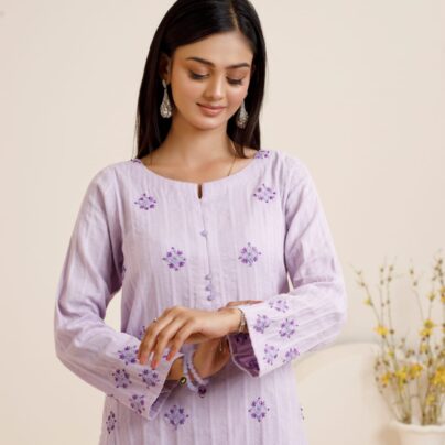 - Crafted from premium self lawn fabric for a comfortable, breathable fit.